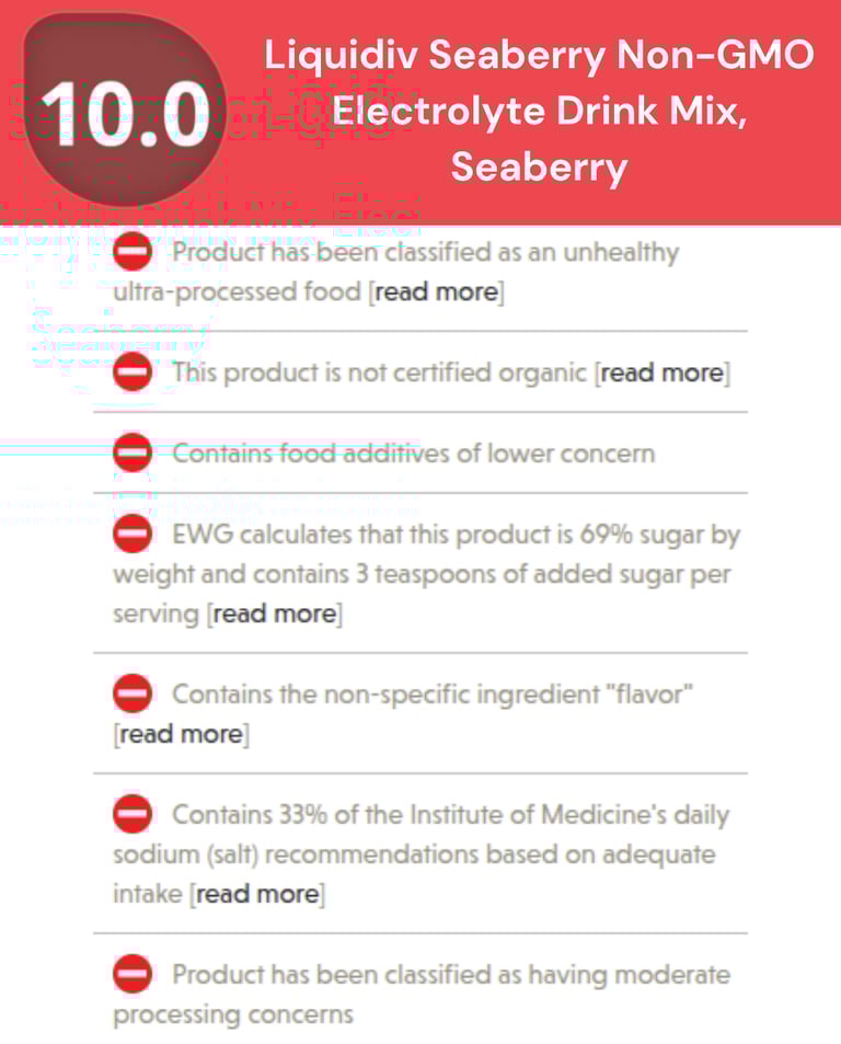 Electrolytes are simple, but the products that claim to nourish your cells may not be. To help put things into perspective, let's bring in the Environmental Working Group's extensive research on some of the best selling electrolyte boosters in the grocery aisles. Read about EWG's extensive research methodology here.
